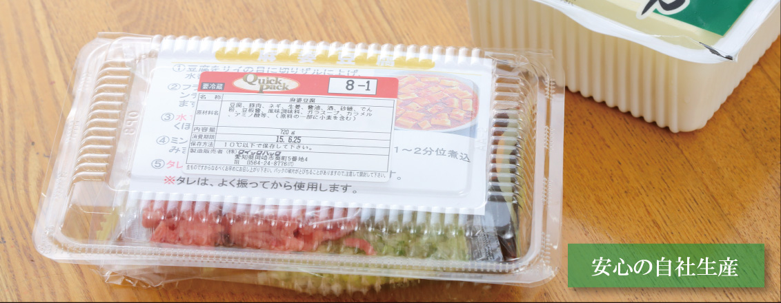 メニューの開発は、家庭でも同じ味に出来るように、家庭用の調理器具を使い試作・開発しています。